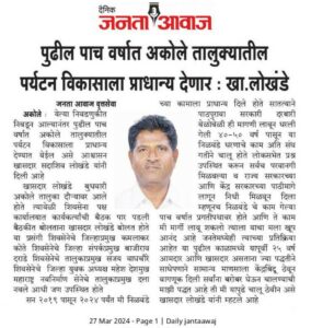 पुढील पाच वर्षात अकोले तालुक्यातील पर्यटन विकासाला प्राधान्य देणार = खासदार सदाशिव लोखंडे